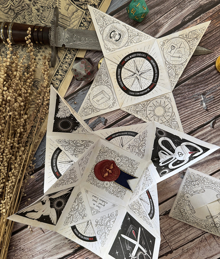 After much experimentation, she’s finally perfected the art of the puzzle invitation: a letter that transforms into several shapes before revealing its hidden message. This PDF includes instructions to make one of your very own, a printable template, and premade artwork to print the Printemps Ball Invitation - an invitation filled with puzzles, ciphers, and accompanying DM instructions on how to incorporate it into your game.